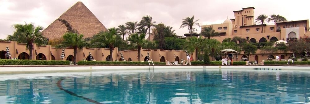 Cairo’s most fashionable swimming pool around amazing scenery of the Grand Pyramids.