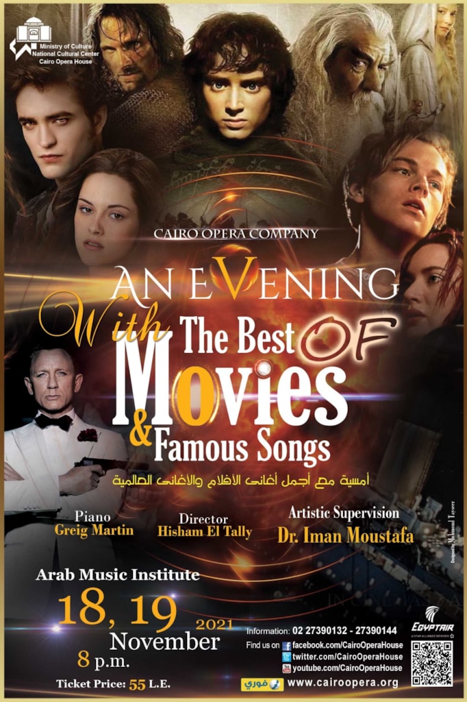 Cairo Opera Company. 18 Nov 2021 - 19 Nov 2021 8:00 Cairo Opera Company - An Evening with the Best of Movies and Famous Songs Date :18 Nov 2021 - 19 Nov 2021 Time : 8:00 Address : Opera Square, Zamalek, Cairo Governorate Website : https://www.cairoopera.org For Details