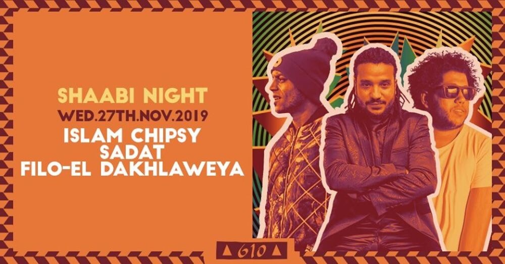 Electro Shaabi ft. Islam Chipsy / Sadat / FILO El Dakhlaweya. 27 Nov 2019 - 27 Nov 2019 10:30 to 3:00PM Date :27 Nov 2019 - 27 Nov 2019 Time : 10:30 to 3:00PM Address : Cairo Jazz CLub610,Sheikh Zayed,Cairo Book Now