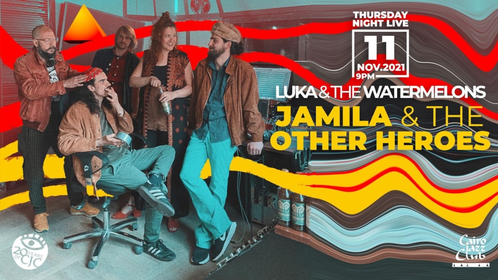 A wild band from manywhere that creates psychedelic desert funk to make you fly! Jamila & The Other Heroes will be gracing our stage on Nov. 11th, all the way from Berlin for the very first time! Leading the band is the vibrant Jamila Al-Yousef; born in Berlin on the day the wall came down, and raised by her influential Palestinian refugee father, Jamila’s cultural activism & strong will to positively change the world is drawn deep into her artistic expression! Let yourself be carried away by an incomparable sound of psychedelic guitar riffs, bass runs, Arab percussion sounds, as well as heavy hip hop & rock influenced drum beats. Luka & The Watermelons will kick off the night with their cheerful indie pop tunes! Music starts at 9PM.