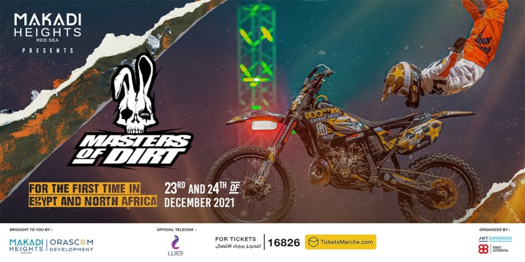 Brought to you by Makadi Heights and organized by JWT Experience and Robust Experiential. At the Red Sea, for the first time in Egypt and Africa, “Masters of Dirt” the world’s most insane and wildest Freestyle Motorcross Show on the 23rd of24th December 2021.