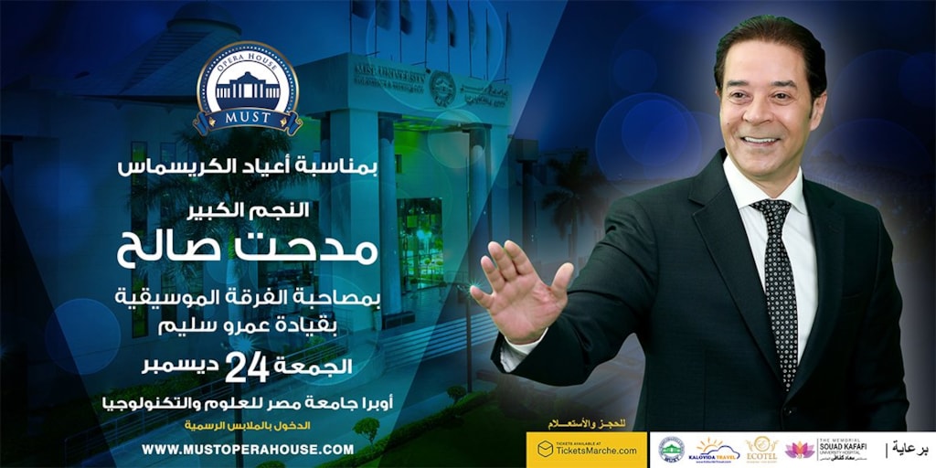 Medhat Saleh. 24 Dec 2021 - 24 Dec 2021 8:00 Medhat Saleh will be performing at Must Opera House (6th October City) on 24 December 2021, 8:00PMDress Code: Formal Date :24 Dec 2021 - 24 Dec 2021 Time : 8:00 Address : 26th of July Corridor,،، First 6th of October, Giza Governorate 12568 Book Now For Details