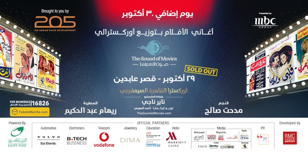 The Sound Of Movies. 29 Oct 2021 - 30 Oct 2021 8:00pm BRINGING EGYPT’S MOVIE SONGS TO LIFE THROUGH A GRAND RE-ORCHESTRATION CELEBRATING 125 YEARS OF MOVIES GREATEST HITS.CAIRO SYMPHONY ORCHESTRA conducted by Nayer Nagui featuring the stars Medhat Saleh and REHAM ABDEL HAKIM at the magnificent Abdeen Palace. Date :29 Oct 2021 - 30 Oct 2021 Time : 8:00pm Address : Abdeen Palace Abdeen Square , Downtown, Cairo Downtown Book Now for details