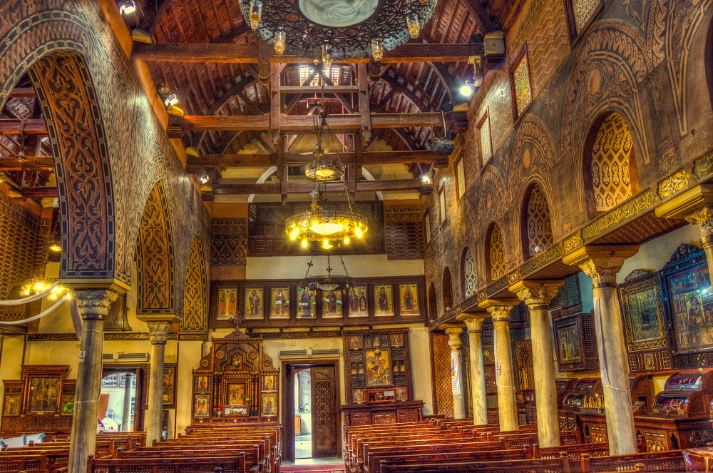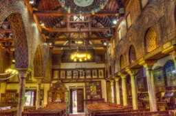 Al Mu’allaqa Church (The Hanging Church) Open: (Closed during mass) Built on top of the bastions of a Roman gate, hence the term ‘hanging’, the church is entered by a set of stairs from the large courtyard. The church is dedicated to the Patron Saint of Egypt, St. George. Souvenirs can be bought from stalls in the courtyard.