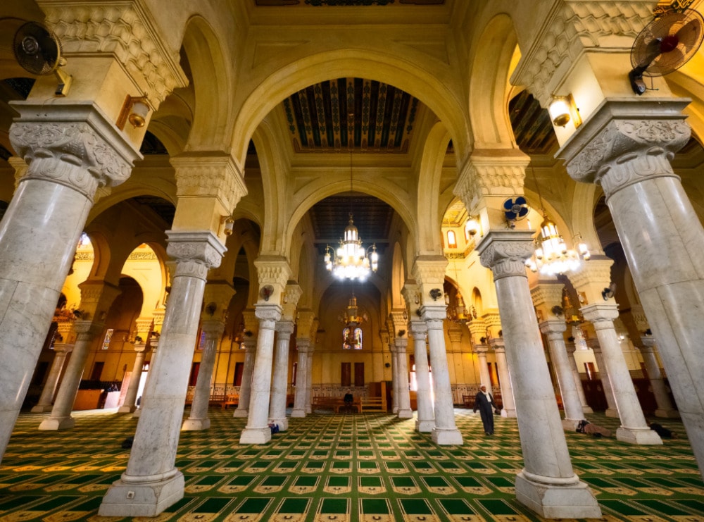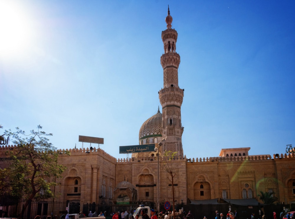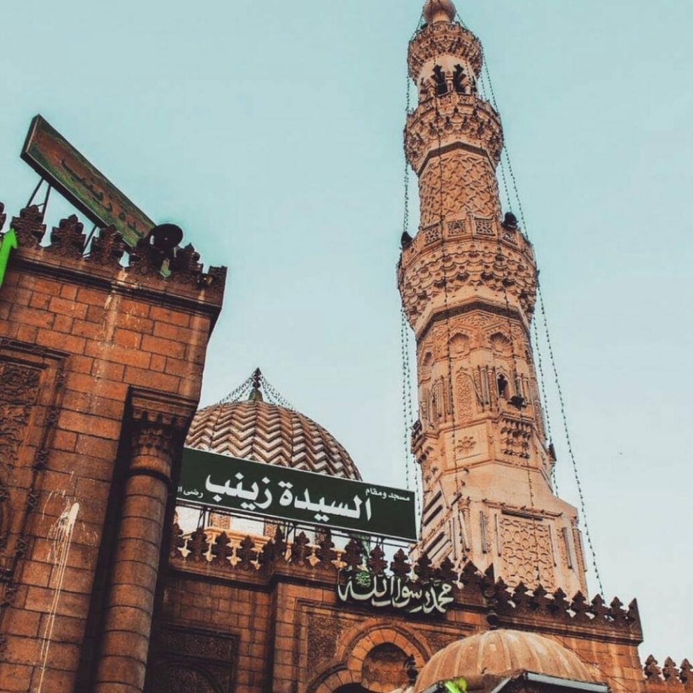 This mosque is a religious and spiritual site, located in the neighborhood of Al Sayeda Zainab which takes its name from the mosque 's name. The mosque was assumed to have been built on the top of the tomb of Al Sayeda Zainab, the sister of Hasan and Husain. Many people come to Al Sayeda Zainab because they believe that she can help them from the beyond.