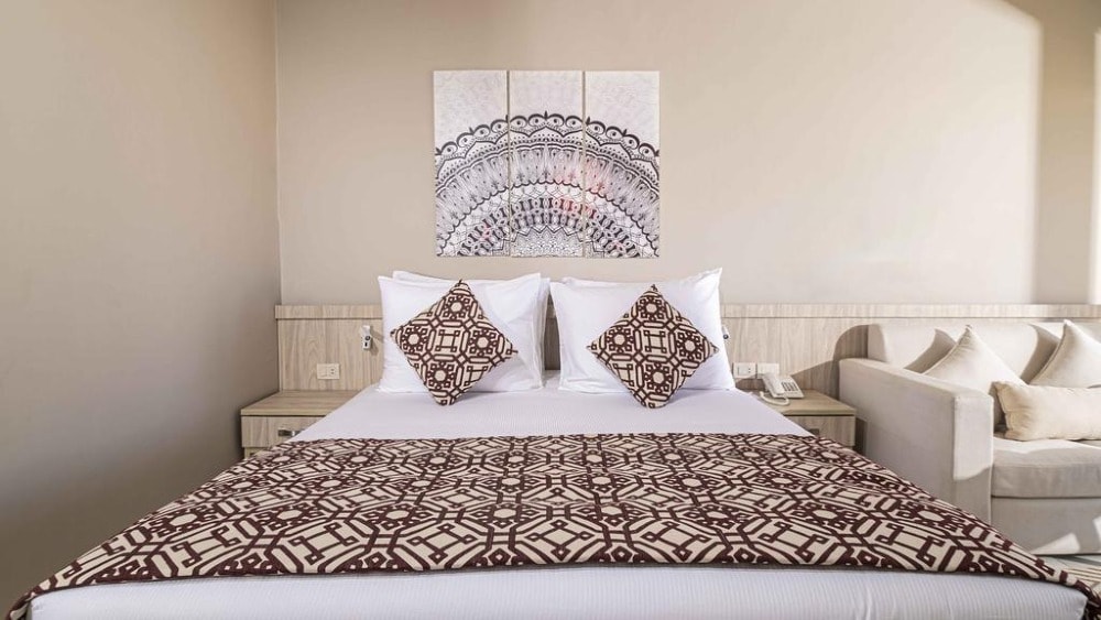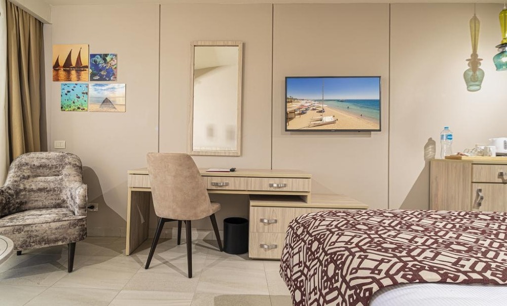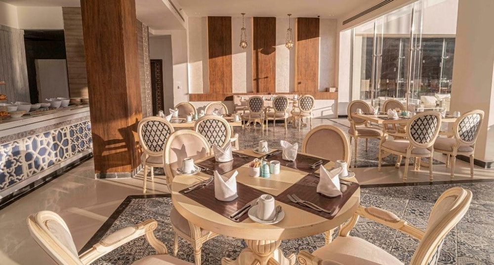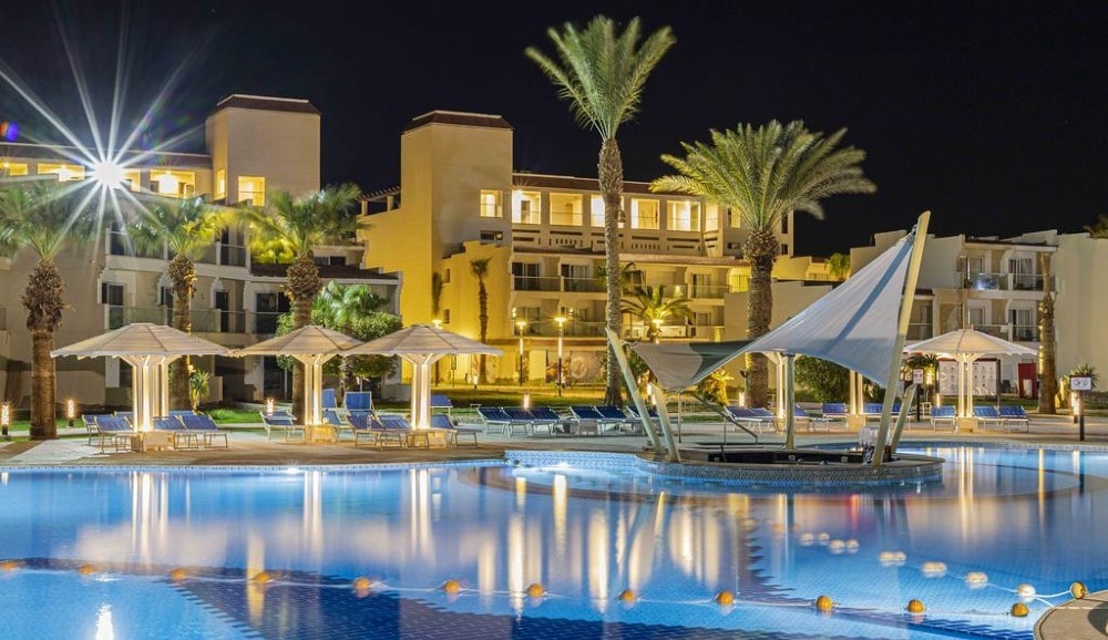 Amarina Abu Soma Resort & Aquapark is a 5-star resort situated in the idyllic and exclusive oasis of Abu Soma with direct access to its own long sandy beach, approximately 200 m wide. Opened in August 2019, it is conveniently located 45 minutes' driving time from Hurghada International Airport and 120 minutes from Marsa Alam International Airport. Due to its close proximity to the Hurghada to Luxor route, the resort is an ideal addition to your Luxor visit or Nile cruise (travel time to Luxor is approximately 3.5 hours). Guests can visit the old towns of Safaga, Quseir, and Hurghada and enjoy the Red Sea mountains. The resort boasts its own house-reef, which can be reached directly from its own private marina, and where they can also enjoy scuba diving courses to explore the mystical Red Sea underwater world.