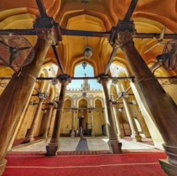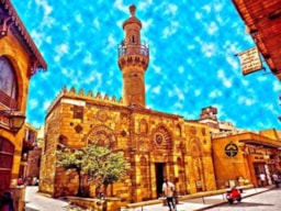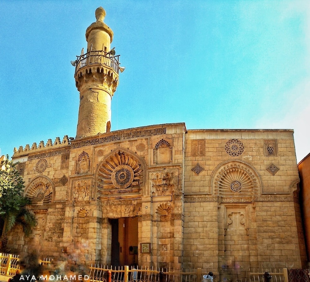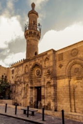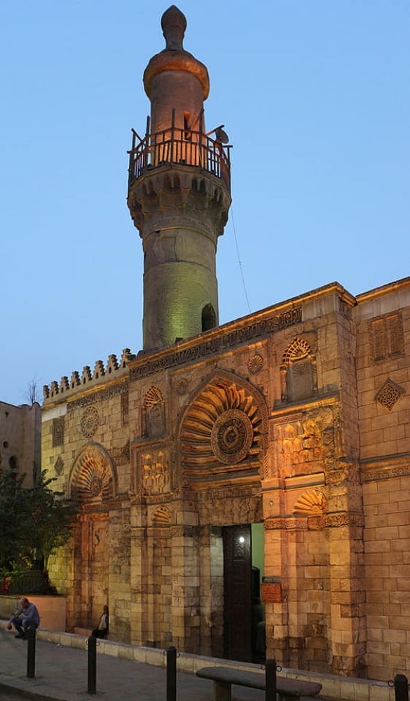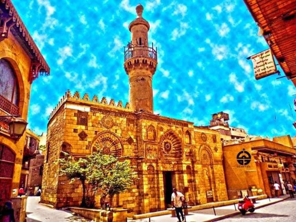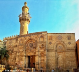 Situated on a famous historic place in Cairo, Al-Muizz li Din Allah Street, near Al-Qalawun Complex. Al-Aqmar mosque is one of the only remaining Fatimid mosques in Cairo. The most prominent of its distinctive features is its western façade, among the oldest stone facades, decorated in this rich varied style, in Islamic architecture in Egypt. The name of the mosque means moonlit in Arabic, in reference to the way its walls shimmer in the moonlight.