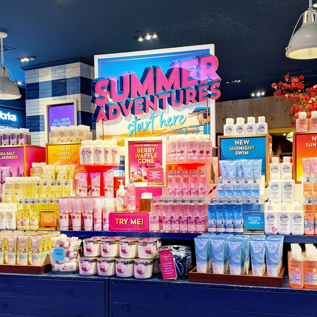 Bath and Body Works stocks a wide range of bath and beauty products The retail store has products ranging from candles to hand soaps. The products are a part of one of the brand's main segments, body care, hand soaps and hand sanitizers and home fragrance. See translation