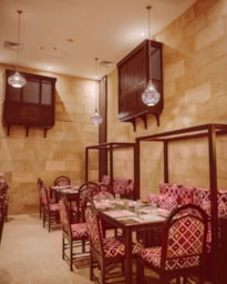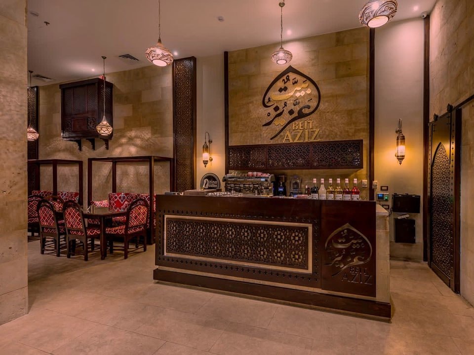 Beit Aziz is an oriental venue boasting an impressive menu of the admired dishes of all time, such as Oriental Sojouk, Chicken Liver with Sauce, Roqaq with Cheese, Meat Sambousek, Syrian Kobeba, Vine Leaves, and more. You can also order your favourite meal from Beit Aziz and have it delivered to your doorstep. The restaurant also presents several live-entertainment shows every weekend. See translation