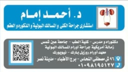 Ahmed Emam is a consultant in Urology and Andrology. He is a lecturer of Urology at the Faculty of Medicine at Ain Shams University. He completed the United States Medical Licensing Exams (USMLE) and obtained the clinical fellowship of urologic oncology (including endourology, laparoscopic, and robotic surgeries) at Roswell Park Comprehensive Cancer Centre, in New York. Urologists diagnose and treat diseases of the urinary tract in both men and women. This includes kidney cancer, bladder cancer, prostate cancer, testicular cancer, penile cancer, ureteral and pelvic cancer, retroperitoneal and pelvic cavity sarcomas, Wilms' tumour, paediatric sarcoma and other types of cancer. They also treat male genital diseases, impotence, and infertility. In addition, they deal with paediatric urological conditions, such as bladder emptying defects, urethral restoration, and urinary tract cancers. They are also trained to correct birth defects of the urethra and treat stone disease endoscopes. See translation