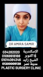Amira Samir is a specialist in Medical and Plastic Surgery who obtained a Bachelor's degree in plastic Surgery. She is a member of the American Society for cosmetology. Plastic surgery is a surgical field that aims at the renewal of the human physique. Plastic Surgery deals with two main realms, reconstructive surgery and cosmetic surgery. Reconstructive surgery is concerned with the restoration of the form and function of body parts due to ailment, birth disorders, or accidents. This operation comprises craniofacial surgery, hand surgery, microsurgery, and the treatment of burns. Cosmetic surgeries are conducted to enhance or alter the shape of the body for aesthetic reasons by eliminating body defects through medical techniques. See translation