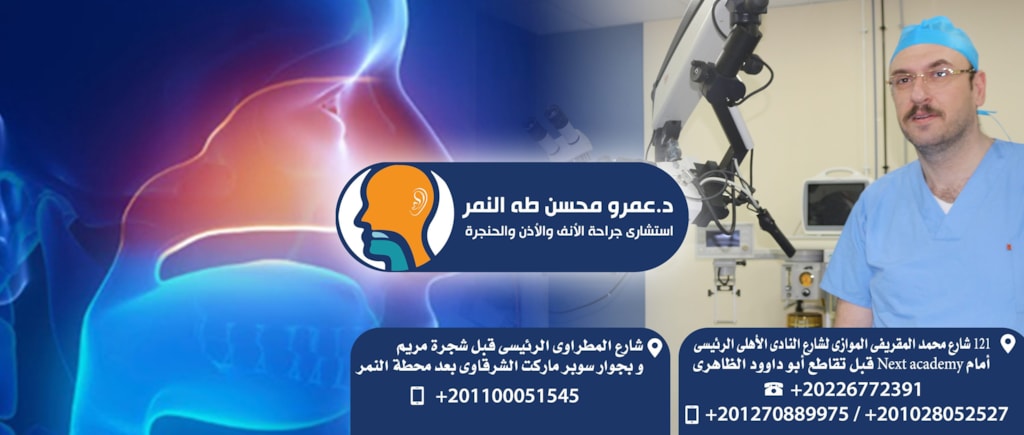 Amr Mohsen is a specialist in ear, Nose, and throat surgeries. Otorhinolaryngology is a medical specialty that is concerned with the surgical and medical supervision of head and neck conditions, namely in the ear, nose, and throat regions. Otorhinolaryngologists deal with a wide range of procedures, such as tonsillectomy (removal of tonsils), adenoidectomy (removal of adenoids), septoplasty (correction of nasal septum to prevent obstruction and enable clear breathing), and tracheostomy (a surgical procedure in which an incision is made into the trachea, through the neck, and a tube inserted so as to make an artificial opening in order to assist breathing), among other procedures. See translation