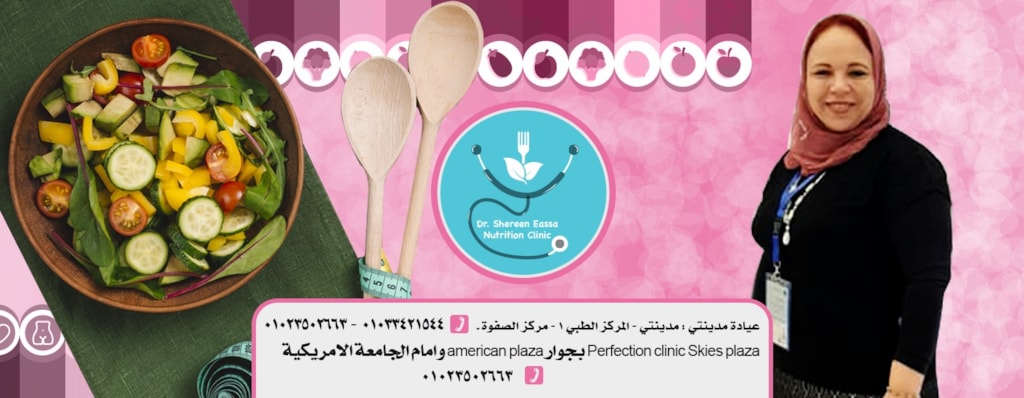 Shereen Eassa is a professor of clinical nutrition, obesity, and underweight. She is a specialist of skin care procedures, such as pigmentation, black hallow, stretch mark, acne, and whitening. Nutritionists are physicians who obtain a bachelor's degree in dietetics, foods, nutrition, and food service management or food science. A nutritionist gives advice, helps treating chronic diseases, and deals with food allergies, sensitivities, weight gain, and self-image. Medical nutrition therapy has proven effective for a plethora of people in terms of weight loss; Nutritionists work to specify for each patient the number of sufficient calories he/she needs to have per day after weighing and measuring the patient for height. See translation