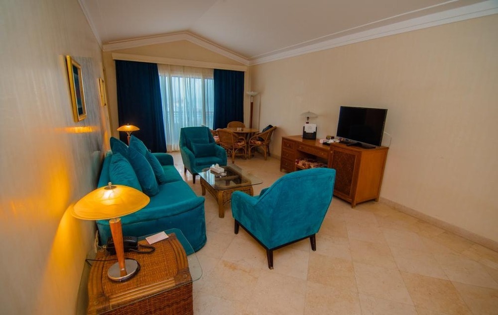 Set between the Red Sea Mountains and the Gulf of Aqaba, the Ecotel Dahab Resort features an outdoor pool and a tennis court. There is also a disco and 5 different bars. Ecotel Dahab Resort rooms are air-conditioned and feature a private balcony or terrace with sea view. Each room is equipped with a flat-screen TV with satellite channels, a minibar, and a private bathroom with amenities. Free Wi-Fi is available in the lobby and each room has free tea and coffee facilities. Guests of Ecotel Dahab Resort can also relax at the Cigar Lounge and have a drink at the pool and beach bars. Sports activities in the nearby area include diving, windsurfing, and kayaking. Visitors can also try a ride with a pedal or glass-bottom boat. Guests can also enjoy beach volleyball, beach football, and beach handball & beach tennis courts. Guests can also enjoy the spa, play billiards or basketball, work out in the fitness center and kids can be entertained in the Kids Area.