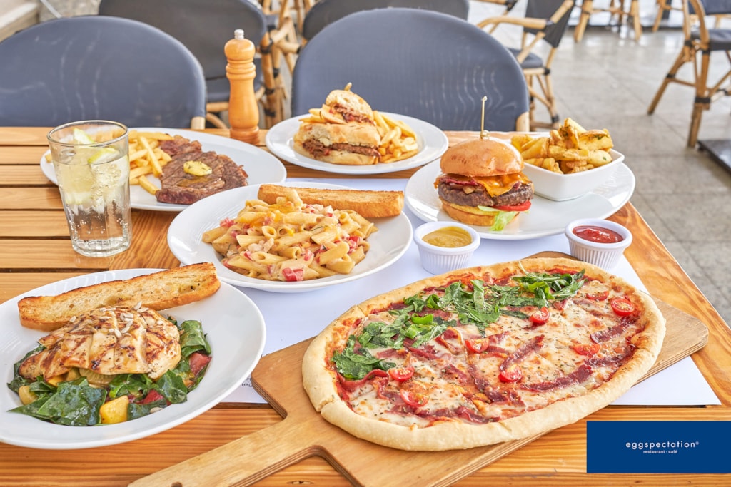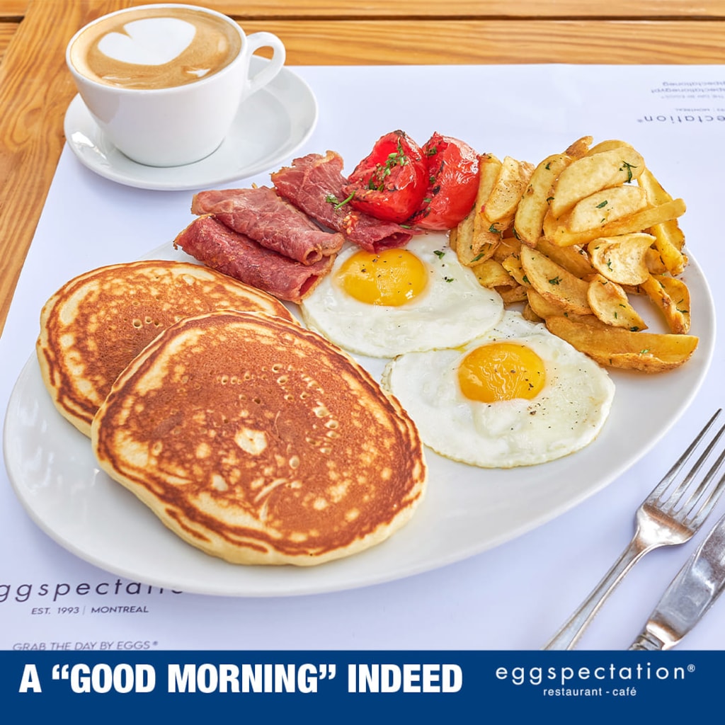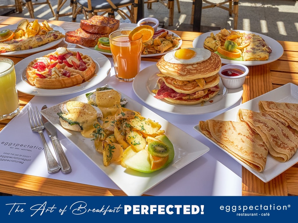 Eggspectation is an international restaurant offering gourmet meals from all over the globe. Kickstart your day by having breakfast in Eggspectation's sunny outdoor space, and you will be immediately looking forward to your next visit. The menu comprises Blueberry Pancakes, High Rise Pancakes, Southwest Sunrise, Cajun Shrimp Cobb Salad, Tropical Chicken Salad, and Smoked Wild Sockeye Salmon Crostini, and more. See translation