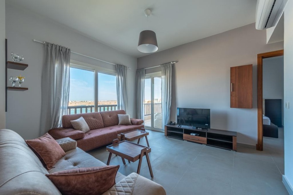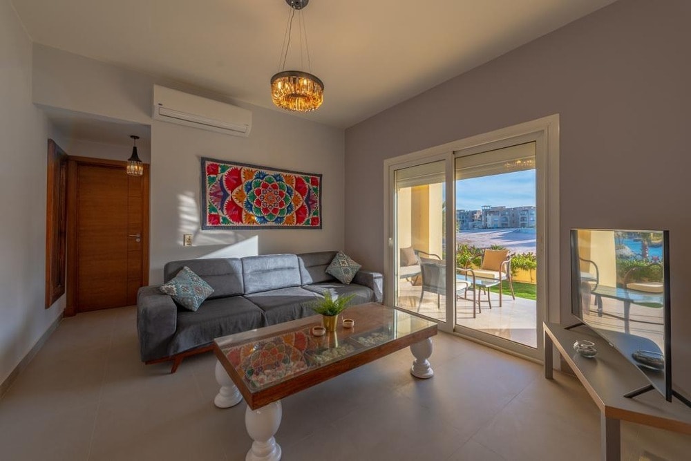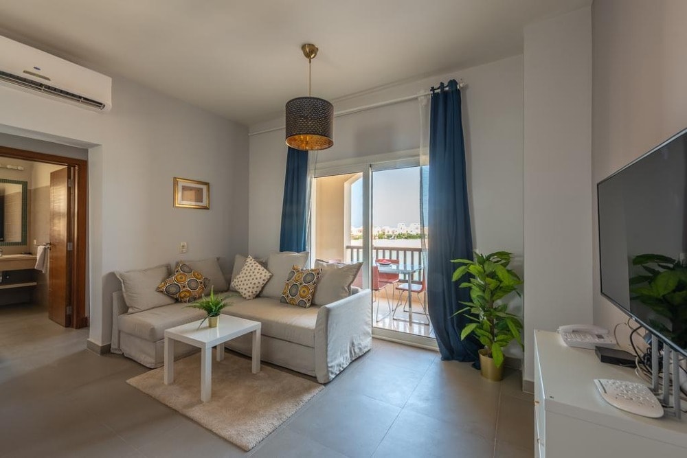 Golden apartments El Gouna provides luxury accommodation in Hurghada. With pool views, and a restaurant, luggage storage space, bar, garden, outdoor pool, and terrace. Both WiFi and private parking are available at the apartment free of charge. Each unit is equipped with a fully equipped kitchen with a fridge, a seating area with a sofa, a flat-screen TV, a washing machine, and a private bathroom with a shower and free toiletries. For added convenience, the property can provide towels and bed linen for an extra charge. A continental breakfast is available daily at Sliders Aqua Park El Gouna.