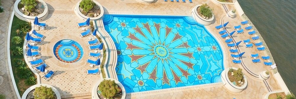The swimming pool is landscaped on different levels enabling guests to enjoy themselves and the Nile view. The extensive pool area comprises 360 sqm. and a separate 16 sqm. rectangular children’s pool. To simply relax in the warmth of the sun overlooking the Nile, the pool bar serves non-alcoholic cocktails in addition to oriental snacks and sandwiches. They offer day-use facility using the pool and a room in summer.