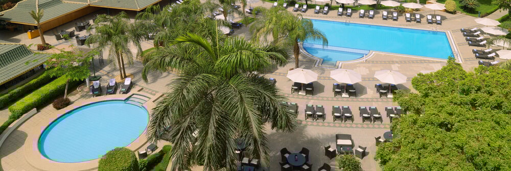 The beautifully renovated pool area and surroundings of this gorgeous hotel with its extension boasting several outdoor swimming pools open from 6am to 6pm. Enjoy the facilities and the great food this establishment has to offer while lounging around the pool or at one of the beautiful outdoor restaurants surrounding the pool. The gym is also close if you choose to hit the machines. The facility is available for hotel guests as well as day-use offers in summer in lovely cabanas or guest rooms.