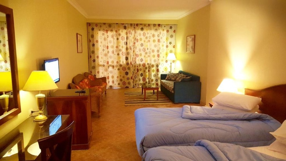 Horizon Elwadi Hote is a 3-star hotel located in Ain Sokhna, the hotel includes a private beach area, an outdoor pool, and a heated indoor pool. The hotel features a restaurant, a shared lounge, and a garden. every room in the hotel is air conditions with a private bathroom, flat-screen TV with satellite channels, and fitted with a balcony or a terrace with a garden view. The accommodation provides a 24-hour front desk, room service, and currency exchange for guests. A continental breakfast is available daily at the accommodation.