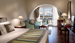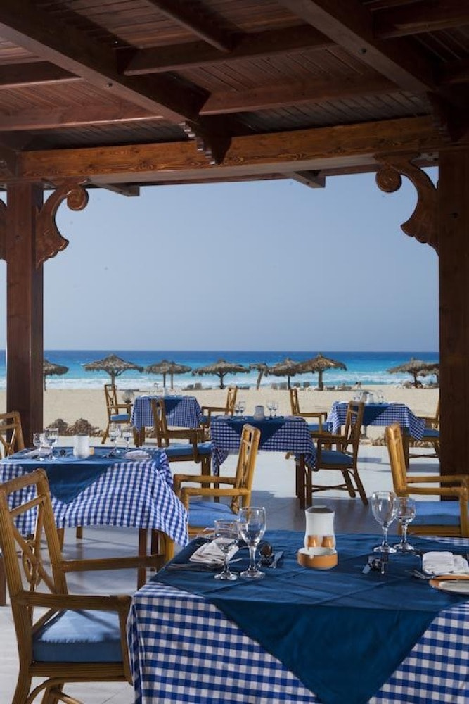 A luxury hotel with a 5-star beach resort on the Mediterranean Sea. It features a large garden terrace with a swimming pool and a fully-equipped wellness center. All rooms are air-conditioned at the Iberotel Borg El Arab, and each room has a minibar. The Borg El Arab boasts an à la carte restaurant serving a range of Arab specialties as well as international meals. Alternatively, guests can enjoy a light meal at the buffet restaurant.