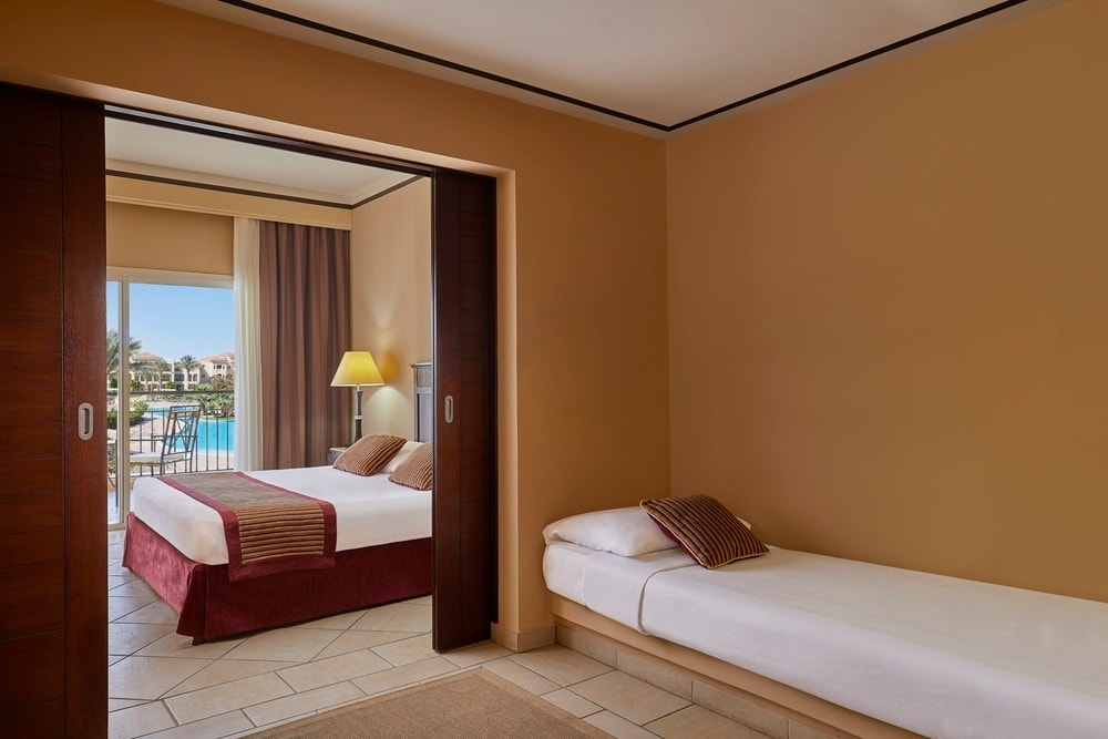 Enjoying a quiet location on Nabq Bay, Jaz Mirabel Beach offers regular bus service to Naama Bay. In addition, it has 6 swimming pools, a water park, and impressive spa facilities. The rooms have plenty of natural light and are decorated in neutral tones. All have air conditioning and a balcony with views of the Gulf of Aqaba or the pool. There is also a spa offering revitalizing and regenerating treatments, as well as massages, relaxation programs, and beauty services for an additional fee. In addition, guests can enjoy the facilities for water sports and windsurfing, diving and snorkeling for an additional fee. The property offers a babysitting service for an additional fee. The Jaz Mirabel hotel has a tennis court and a shopping center on the premises.