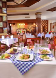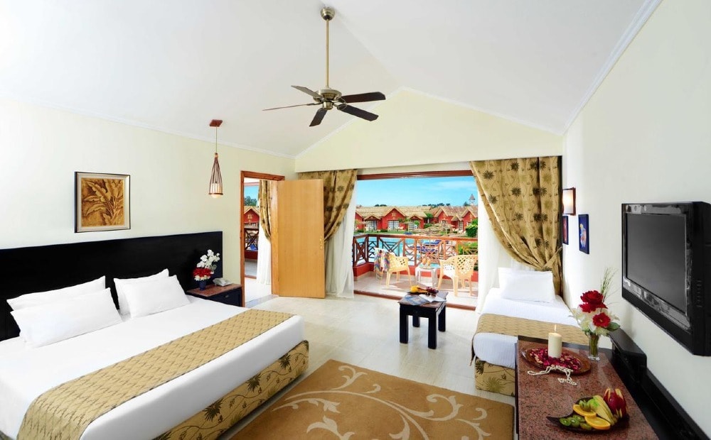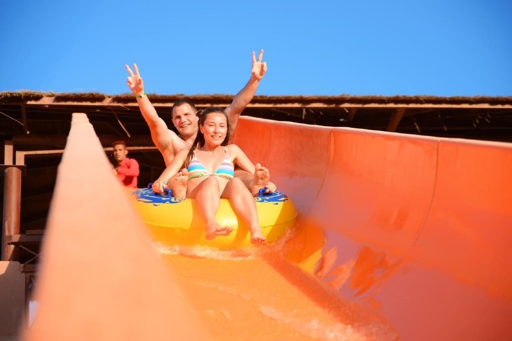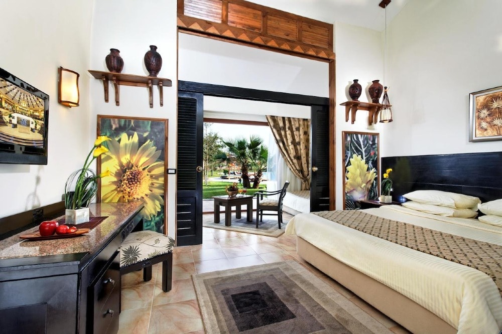 Boasting 21 pools and 35 water slides, this resort in Hurghada is a true water theme park. Its rooms feature a terrace or balcony overlooking the pools or the resort’s gardens. The Jungle Park offers bungalow-style rooms set around the swimming pools. The bright rooms are decorated with the warm colors of African art. All rooms have a TV, a mini-bar, and a private bathroom. Several eateries in the resort cater to every taste. Mediterranean, German, Mexican and Oriental cuisine are just some of the options available. The resort also features a number of pool bars, providing light meals and drinks throughout the day. Children’s pools and a kid’s club are available at Jungle Park, along with several sports facilities, including a tennis court, a football field, and minigolf.