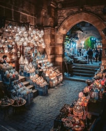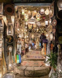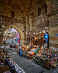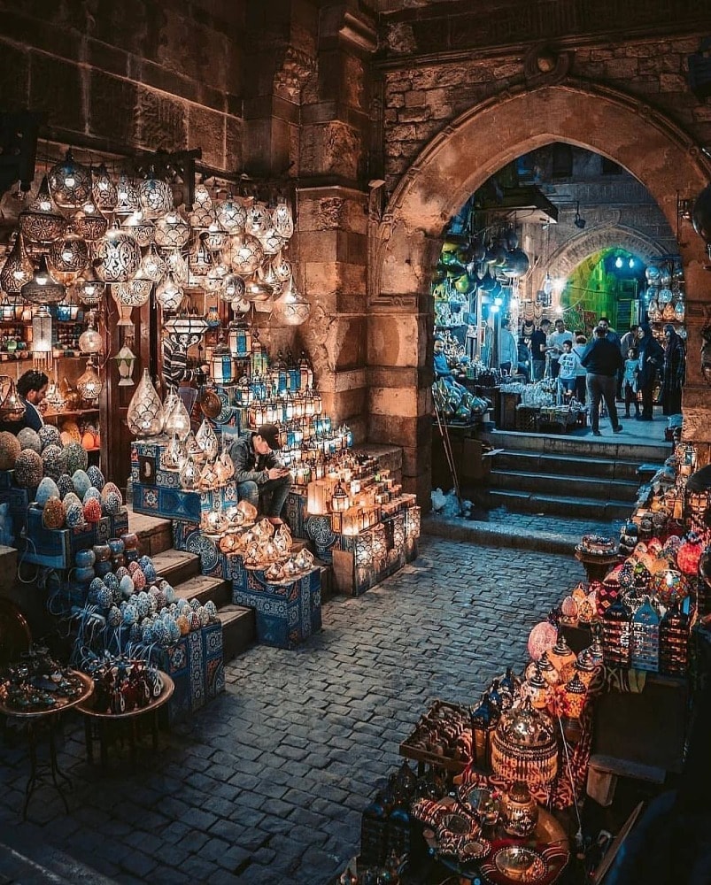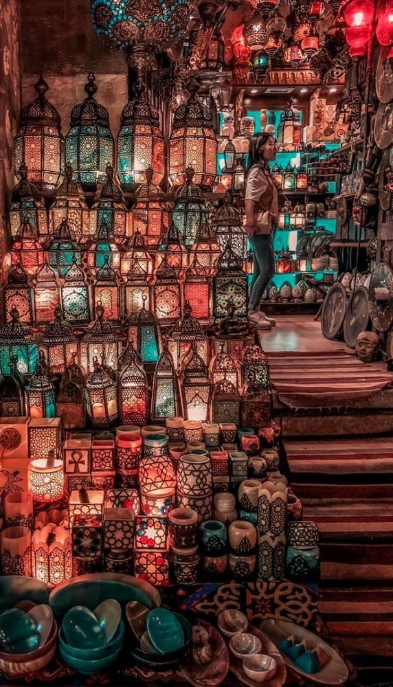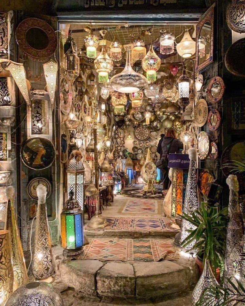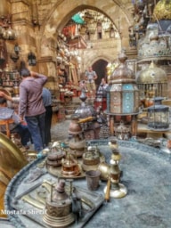 Khan Al Khalili contains skinny lanes, is basically a medieval-style mall. Cairo’s famous bazaar, the Khan where you can buy touristy and local knickknacks and artifacts like belly dance outfits, ethnic jewelry, shisha pipes, brass ornaments, and spices. Make sure you bargain! Rest in El Fishawi, one of Cairo’s oldest cafés operating for the last 200 years and boasting beautiful wall mirrors dating back to the 17th century. The Naguib Mahfouz restaurant is the best place to eat while at Khan.