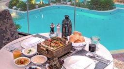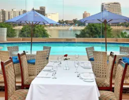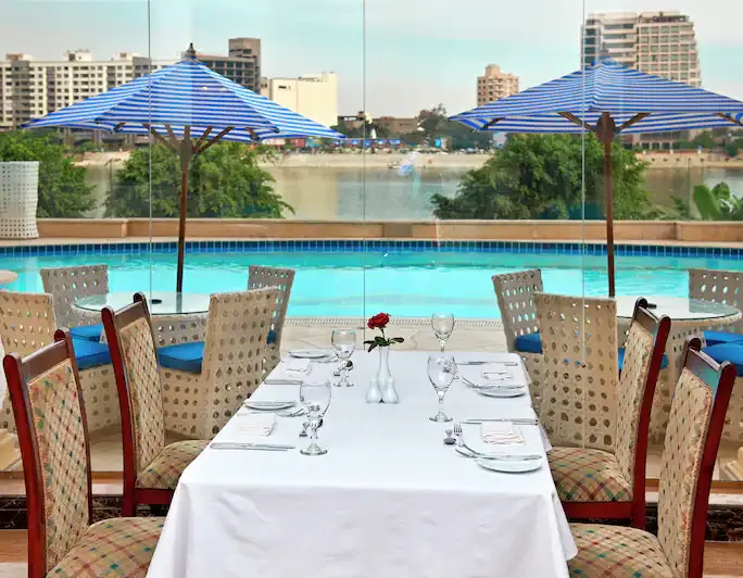 Nestled along the graceful Nile River and adorned with green trees, Nile Breeze boasts a variable selection of meals from international cuisines. The restaurant overlooks the swimming pool of Hilton Cairo Zamalek and serves a la carte menu. See translation