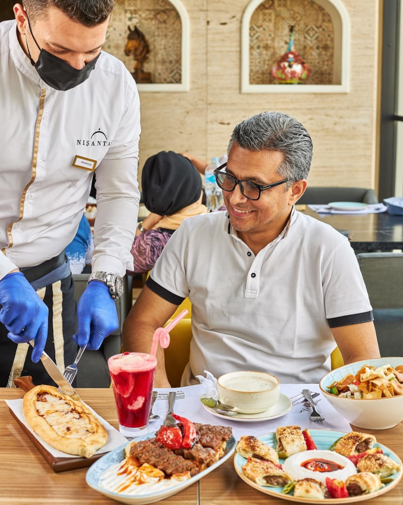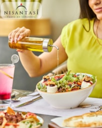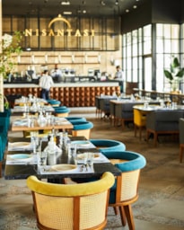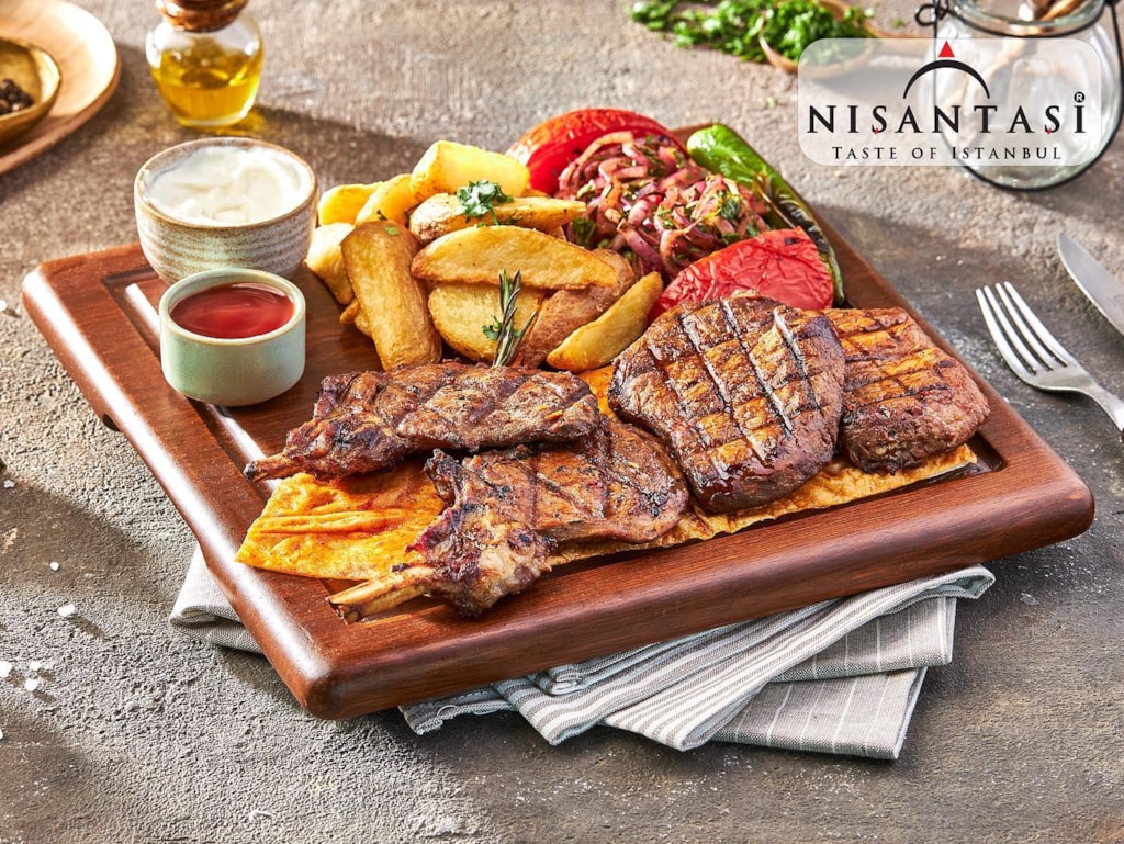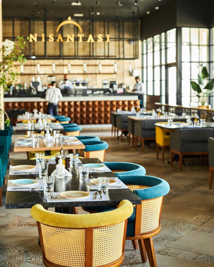 استمتع بطعم اسطنبول في نيسانتاسي الذي يقدم العديد من الأطباق الشهية التي تجمع بين التأثيرات التركية والعالمية. تشتهر بلحم شانك جارا، والكباب الضاني، وسلطة فتوش، ودجاج ناجتس، وأكثر من ذلك. غرفة الطعام هي مساحة مريحة وحديثة ذات أجواء مبهجة