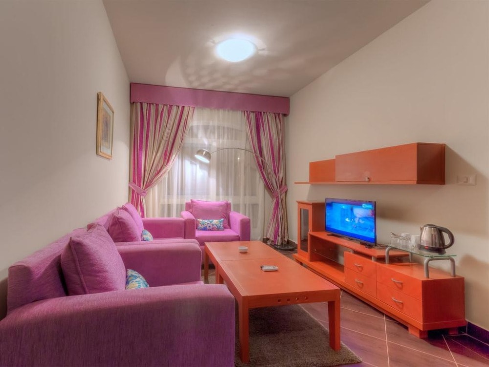 Porto Matrouh Holidays Apartments in Marsa Matruh provides accommodation, a restaurant, an outdoor swimming pool, a garden, and a terrace. All of the air-conditioned units feature a private bathroom, living room, flat-screen TV, fully-equipped kitchen, and balcony with a pool view. For added convenience, the property can provide towels, and bed linen for an extra charge. A water park is also available for guests at the aparthotel. Cleopatra Beach is 2.5 km away from Porto Matrouh Holidays Apartments.