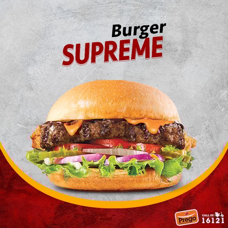Founded in 1997, Prego has been known by countless people for years as one of the top cutting-edge fast-food chains offering a wide variety of sandwiches and fast-food dishes. At Prego, you will find high-quality food at favorable prices. The menu includes Grilled Chicken, Cruncho Chicken, Shish Tawook, Burger Supreme, and more. See translation