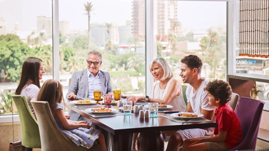 The main restaurant at Sheraton Cairo, offering various cuisines including Egyptian, Lebanese, and Syrian. Rawi has a kids’ area where children can enjoy various entertainment activities like face painting, dancing, and playing.