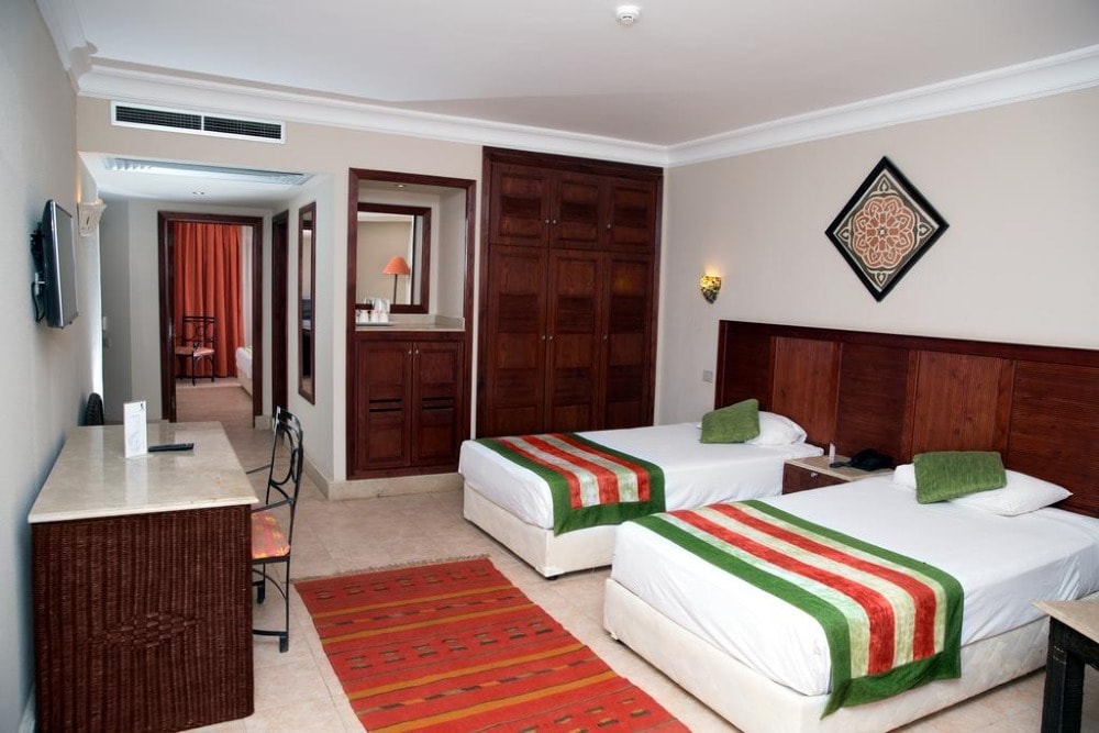 Located in a special spot at Ain Sokhna, provides 4-star rooms with a balcony, The spacious rooms are decorated in soft colours. Each is air-conditioned, has a sofa bed and a satellite TV. A minibar and a tea/coffee maker are provided. A hairdryer is in the bathroom. Its outdoor pool is surrounded by cushioned loungers. Snorkelling is possible at the beach. Guests can play a game of volleyball at the beach or table tennis in the games room. Romance Hotel also has a modern gym. There is a playground and a pool for younger guests.