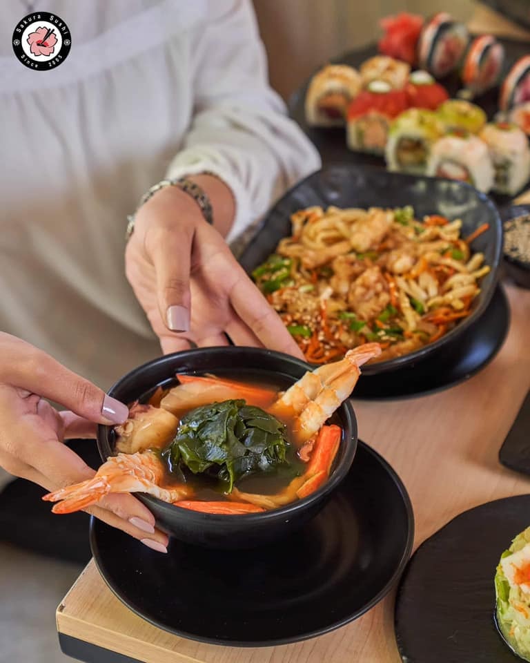 ساكورا سوشي هو أحد مطاعم السوشي المشهورة في القاهرة، ولا يقدم فقط أفضل المأكولات الآسيوية الأصلية، بل كذلك المكونات الآسيوية الطازجة. إنه يمزج بشكل مثالي بين الأناقة العصرية والأناقة المتطورة، مما يجعله مكانًا فاخرًا للعشاء الرومانسي والليالي الدافئة. وتقدم قائمة ساكورا الواسعة تجربة رائعة مع مجموعة واسعة من السوشي، وحساء ميسو، وحساء المأكولات البحرية، وياكيتوري، وتيمبورا أودون، ولحم بقر ترياكي، ودجاج ترياكي، وتقدم هذه الوجبات بشكل رائع