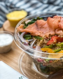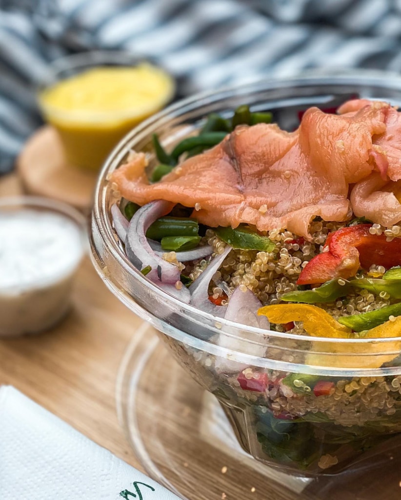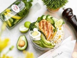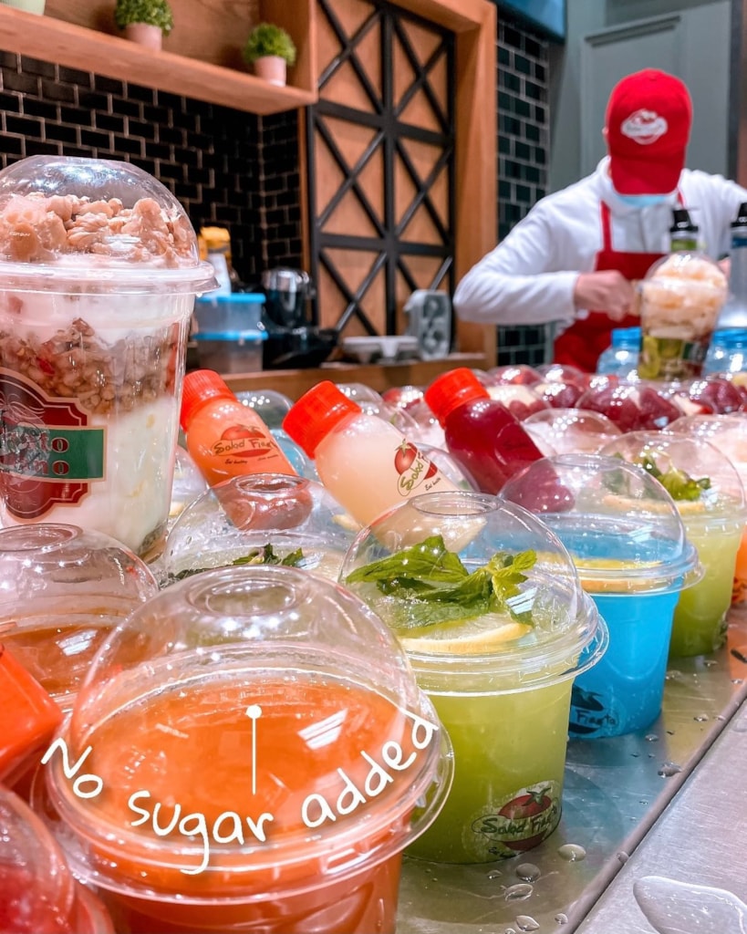 Salad Fiesta flaunts a vast selection of calorie-free meals and drinks for take-away, delivery, and catering. It is home to healthy salads, juices, greek yoghurt, hot drinks, cocktails, ginger shots, smoothies, and protein shakes. Your meal won't exceed 2000 Kcal. See translation