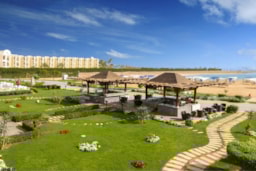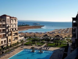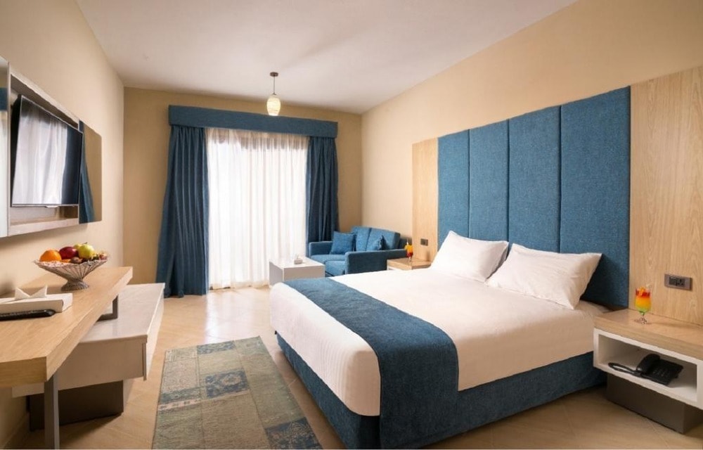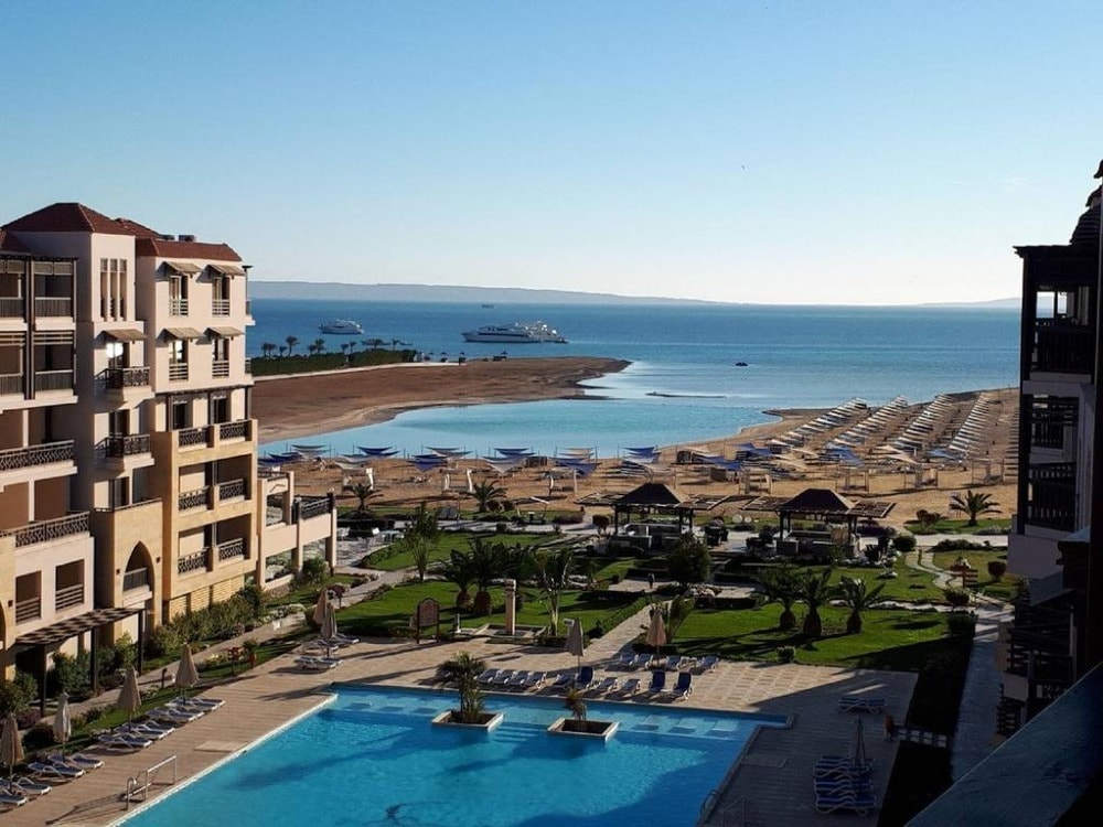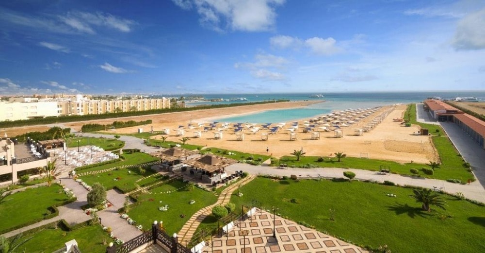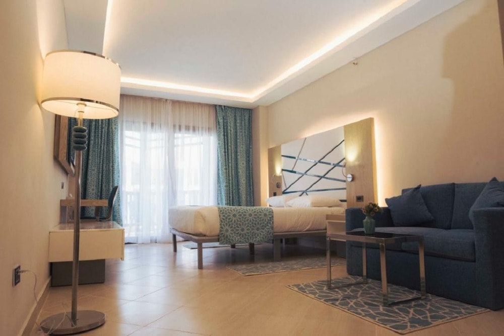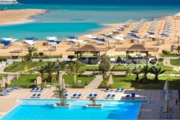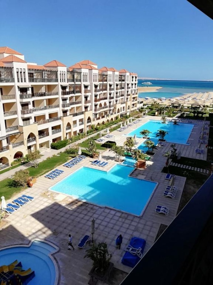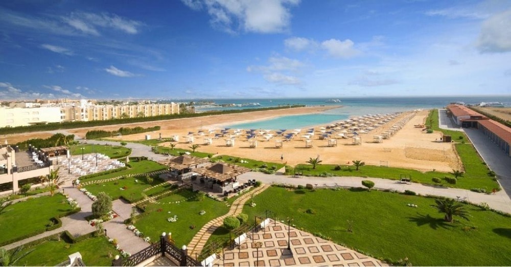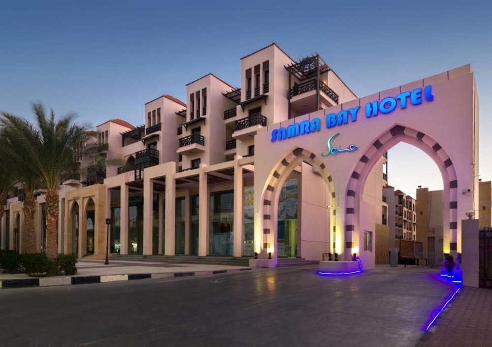 Samra Bay Hotel & Resort is 5* Hotel located directly on the beach, in the city center of Hurghada Promenade, Hilton Square. It is 5 minutes from Hurghada airport The low-density front line resort combines a private beach, luxury facilities, and borders the famous promenade with its world-renowned restaurants, bars, cafeterias, clubs, and shopping centers to meander through.