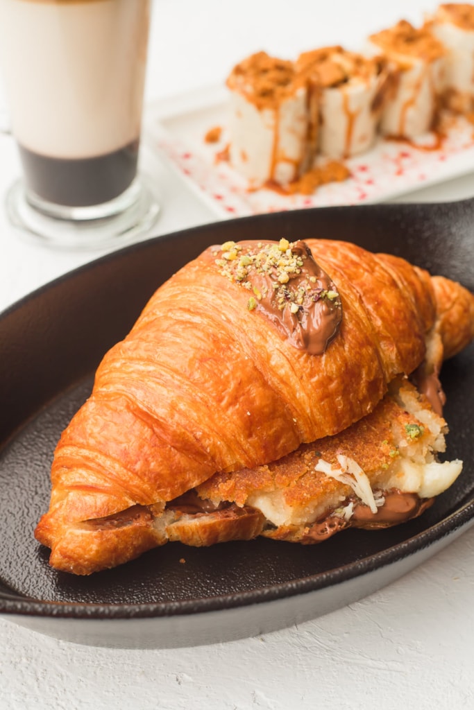 Embark on an outstanding Lebanese journey with Semsom's head-turning Lebanese dishes, such as Turkey, Cheese & Cashew Manoucheh, Grilled Halloumi Croissant with Olive Paste, Hummus with Lebanese Spices, Eggs & Soujouk, and more. See translation