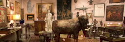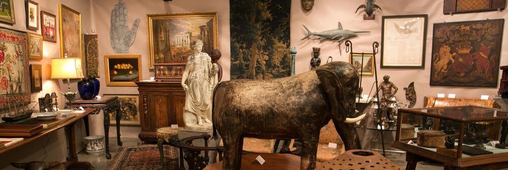 A vast collection of oil paintings, sculptures, therma, vases, and Chinese antiques.