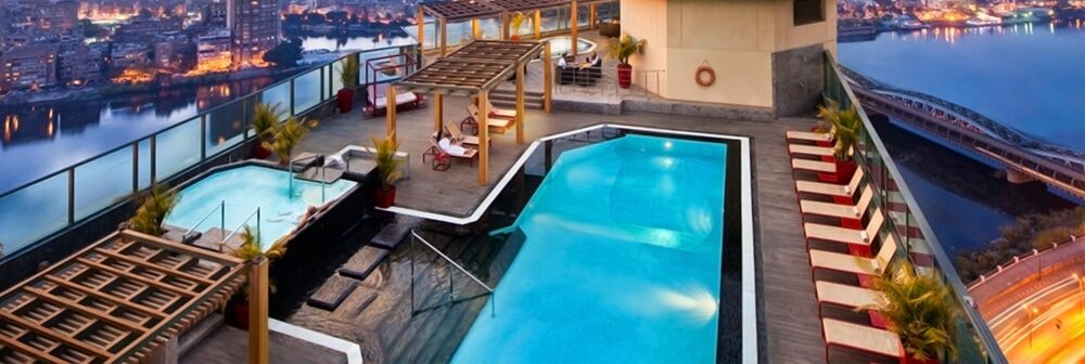 Located on the twenty-fifth floor, this pool area and restaurant are strategically situated so you can enjoy the skyline of Cairo, and the sun setting into the river Nile while relaxing poolside. The Sky Pool menu includes both hot and cold items, to suit each guest's discerning palate. In addition, a wide variety of cocktails and mocktails are available for a refreshing cool down under the warm Cairo sun.