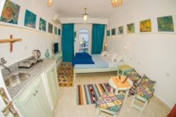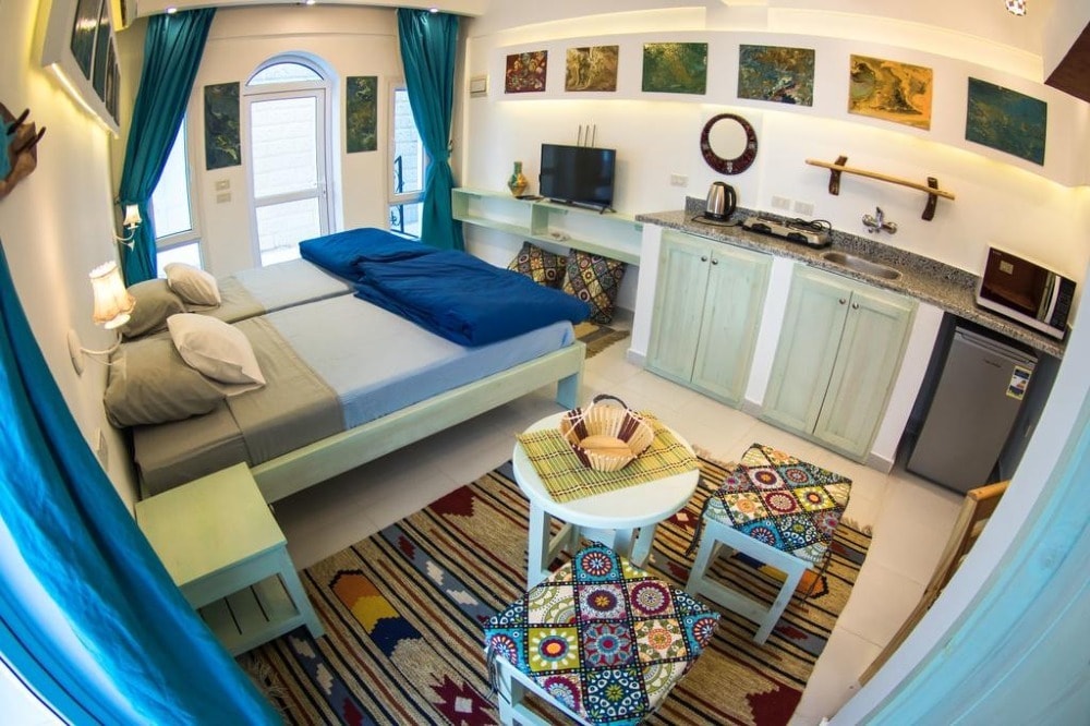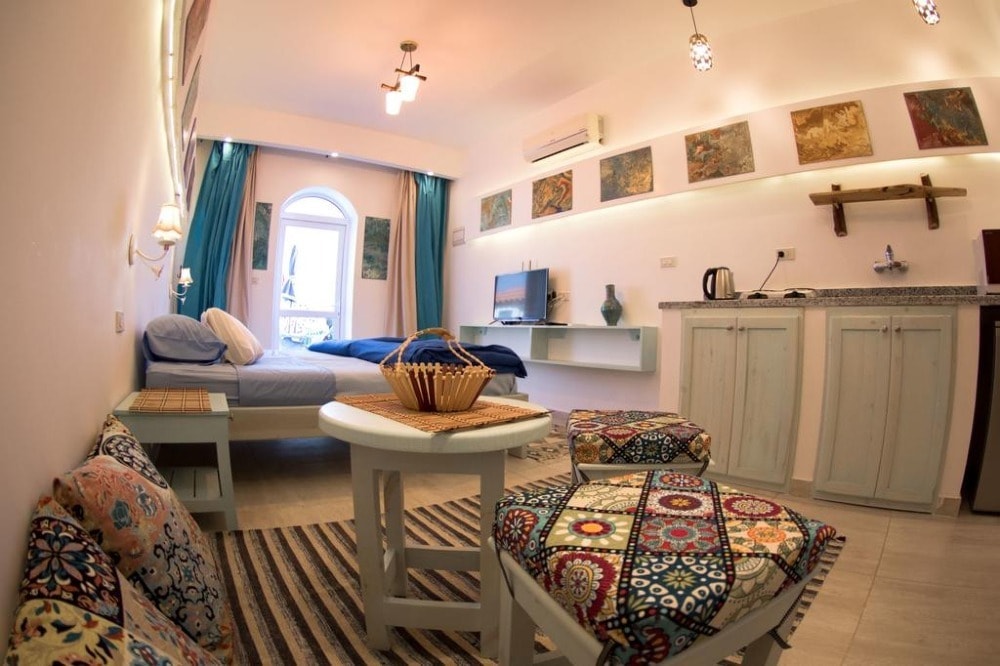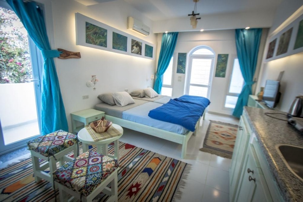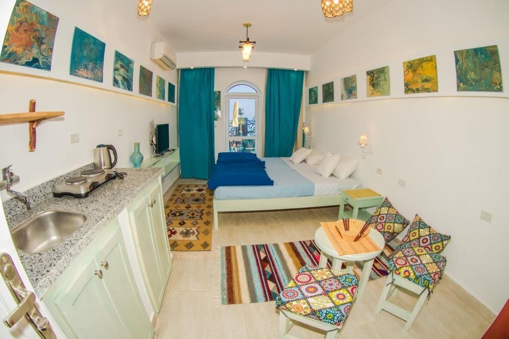 Located in Dahab, 300 m from Dive Urge - Dive Centre, SKYROCK provides accommodation with a garden, free WiFi, a 24-hour front desk, and a concierge service. This beachfront property offers access to a patio. This air-conditioned apartment comes with a seating area, a kitchenette with a dishwasher, and a satellite flat-screen TV. For added convenience, the property can provide towels and bed linen for an extra charge. Guests at the apartment can enjoy a continental breakfast. SKYROCK offers a terrace. Both a bicycle rental service and a car rental service are available at the accommodation, while snorkeling and cycling can be enjoyed nearby. Popular points of interest near SKYROCK include Eel Garden - dive site entry, Fantasea Divers and Blue Beach Dive Club.