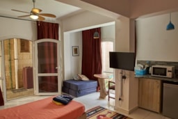 featuring private beach area and views of the garden, Solari's accommodations provide a 24-hour front desk, airport transfers, room service and free WiFi throughout the property. All rooms are equipped with air conditioning, a seating area, a flat-screen TV with satellite channels, a kitchen, a terrace, a dining area and a private bathroom with a shower. The units will provide guests with a wardrobe, a kettle, and barbecue facilities. Solaris is set in Dahab, 300 m from Dive Urge - Dive Centre. Activities such as hiking, snorkeling, cycling can be enjoyed in the surroundings, and guests can relax along the beachfront. Popular points of interest near the accommodation include Eel Garden - dive site entry, Fantasea Divers and Blue Beach Dive Club.
