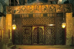Open: 8am-12:45pm & 2:30-3:15pm daily The church of St. Barbara is among the churches of Old Cairo of historic importance. The view of the interior of the church is a wooden screen decorated with geometrical patterns of ebony and ivory inlay. This 7th-century church was originally dedicated to St. Cyrus and St. John, but is now dedicated to the 3rd-century saint and martyr, Barbara. One of the larger churches in the area, the rear section features rare relics and icons of Saint Barbara.