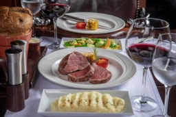 يتميز مطعم ستيك هاوس بالرائحة الجذابة للحوم المشوية التي تملأ المكان. وتشمل قائمة الإغراءات شرائح اللحم النضرة، والمأكولات البحرية الطازجة، والضلوع الفخمة، والمعكرونة الأصلية. يقع المطعم في منطقة اللوبي بجناح الحديقة في فندق كايرو بيراميدز