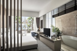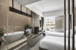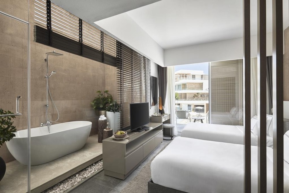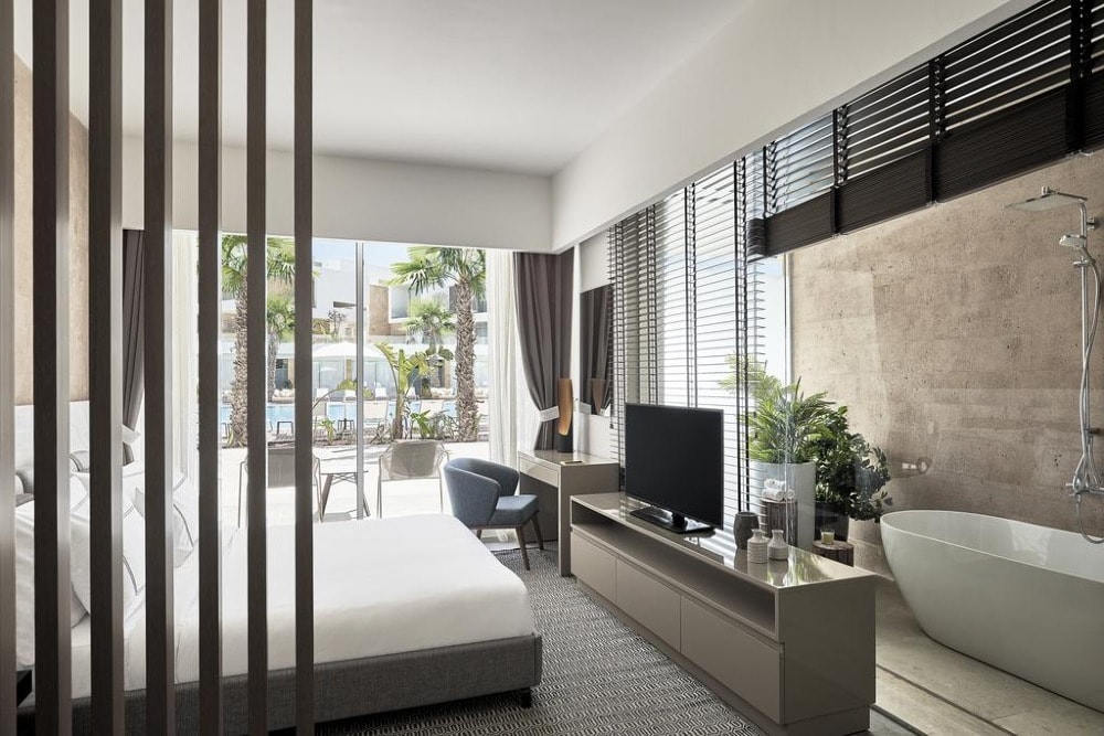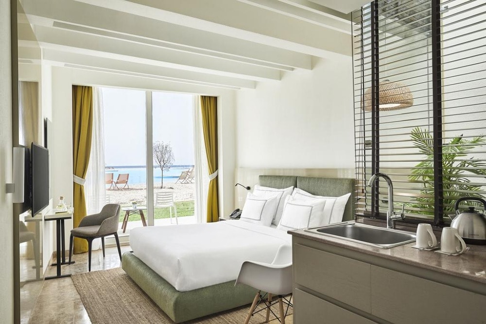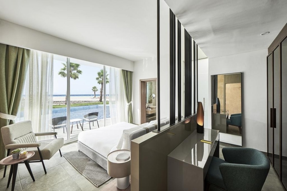 Located in El Alamein, The G Hotel offers beachfront accommodation, 40 km away from Porto Marina. The hotel provides various facilities, such as a restaurant, a bar, and a private beach area. All rooms feature a flat-screen TV with satellite channels and a private bathroom. The accommodation offers a 24-hour front desk, room service, and currency exchange for guests. All units in the hotel are equipped with a kettle. A buffet breakfast is available daily at The G Hotel. The accommodation offers an outdoor pool.