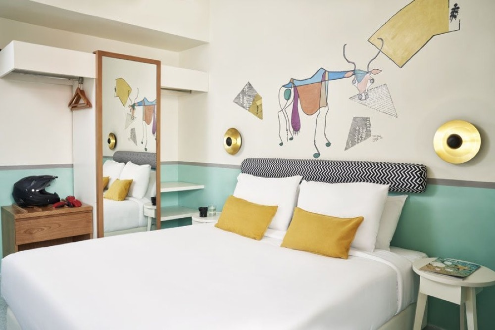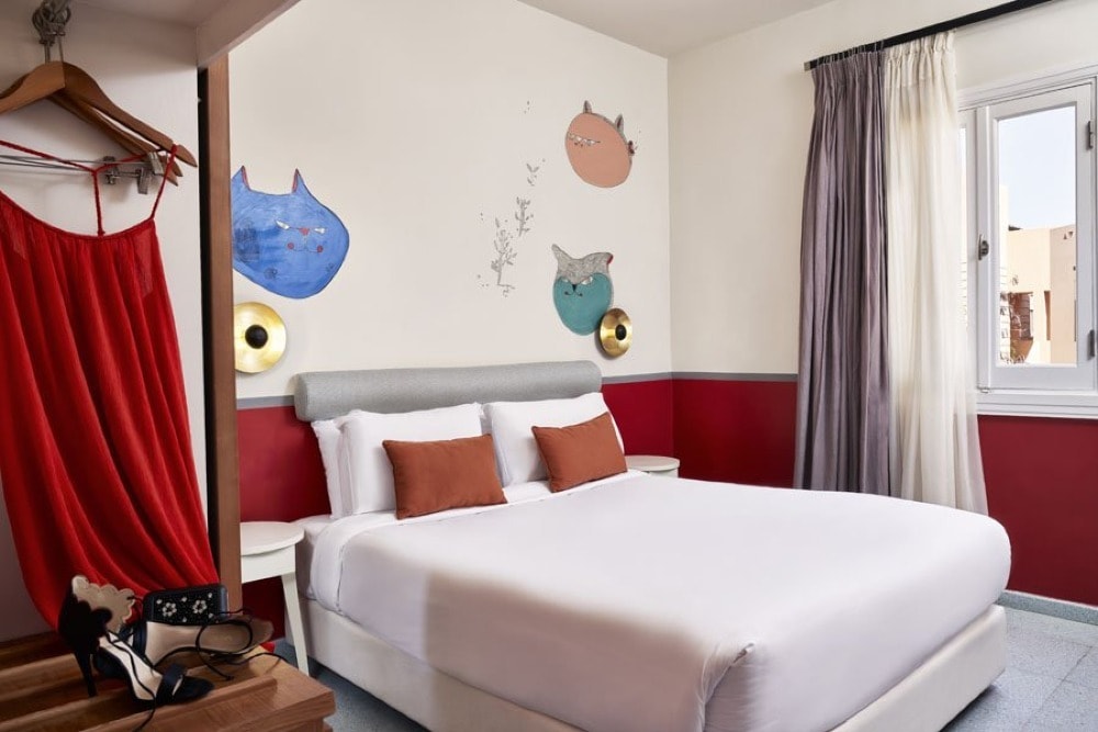 A three-star hotel within the luxurious Abu Tig Marina overlooking the stunning Red Sea, Turtle’s Inn brings urban flair to El Gouna. The hotel attracts water sports enthusiasts along with partygoers due to its prime location by the town’s popular dining, entertainment, shopping and leisure venues, as well as the buzzing El Gouna nightlife. Contrasting the pastel green façade that stands out from the azure surroundings, Turtle’s Inn interiors are newly renovated with vivid colors, hip décor, and geometric stoned floors, adding to the bohemian atmosphere. The hotel offers a relaxing escape from the lively Abu Tig Marina, being home to 27 Rio de Janeiro inspired rooms with colorful designs, and vibrant hand-drawn illustrations of animals decorated by local artists, where each room boasts a unique ambiance to ensure guests experience a one-of-a-kind stay.