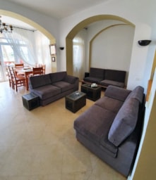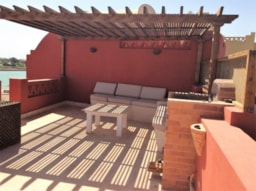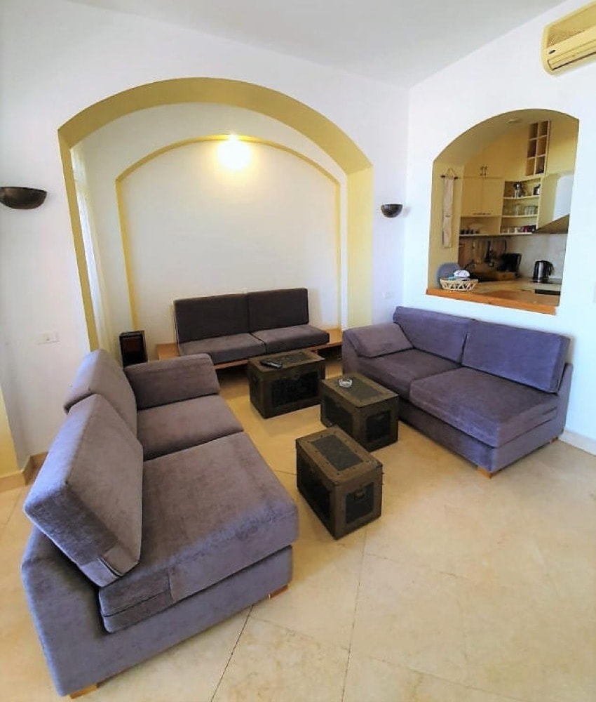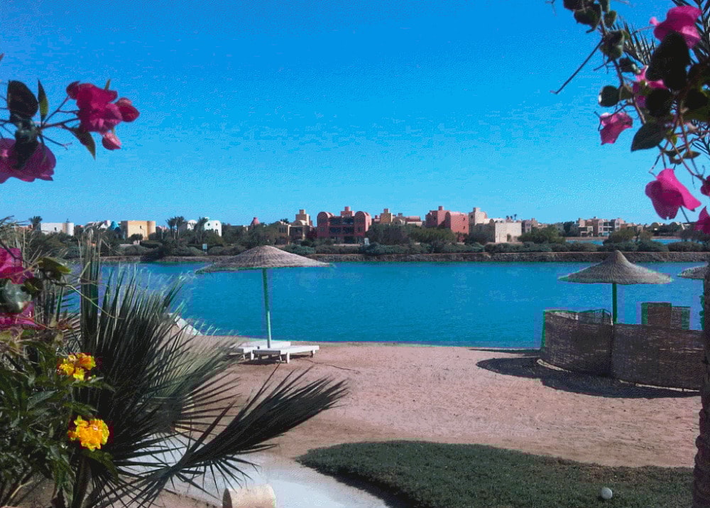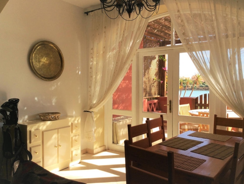 Villa Melody is a townhouse in the West Golf I area of El Gouna. Fully furnished, with 3 bedrooms, it accommodates up to 6 persons. It has furnished terraces at all levels, sunbeds and direct access to the sea-water lagoon. Enjoy panoramic views of the famous El Gouna golf course from each terrace. It is a combination of modern design and Egyptian Nubian style. In addition to the large private ground floor terrace with very comfortable seating and views over the lagoon, the townhouse has a second terrace at the first floor and additionally a large roof terrace with fascinating views over the area of El Gouna, the mountains and the 4th hole of the golf course. A lot of activity could be enjoyed nearby fascinating diving areas, kite surfing, attractive offers of water sports, excellent beaches, 18 hole USPGA golf course, riding, biking, exquisite restaurants, perfect night-life, desert safaris, and many more activities to explore.